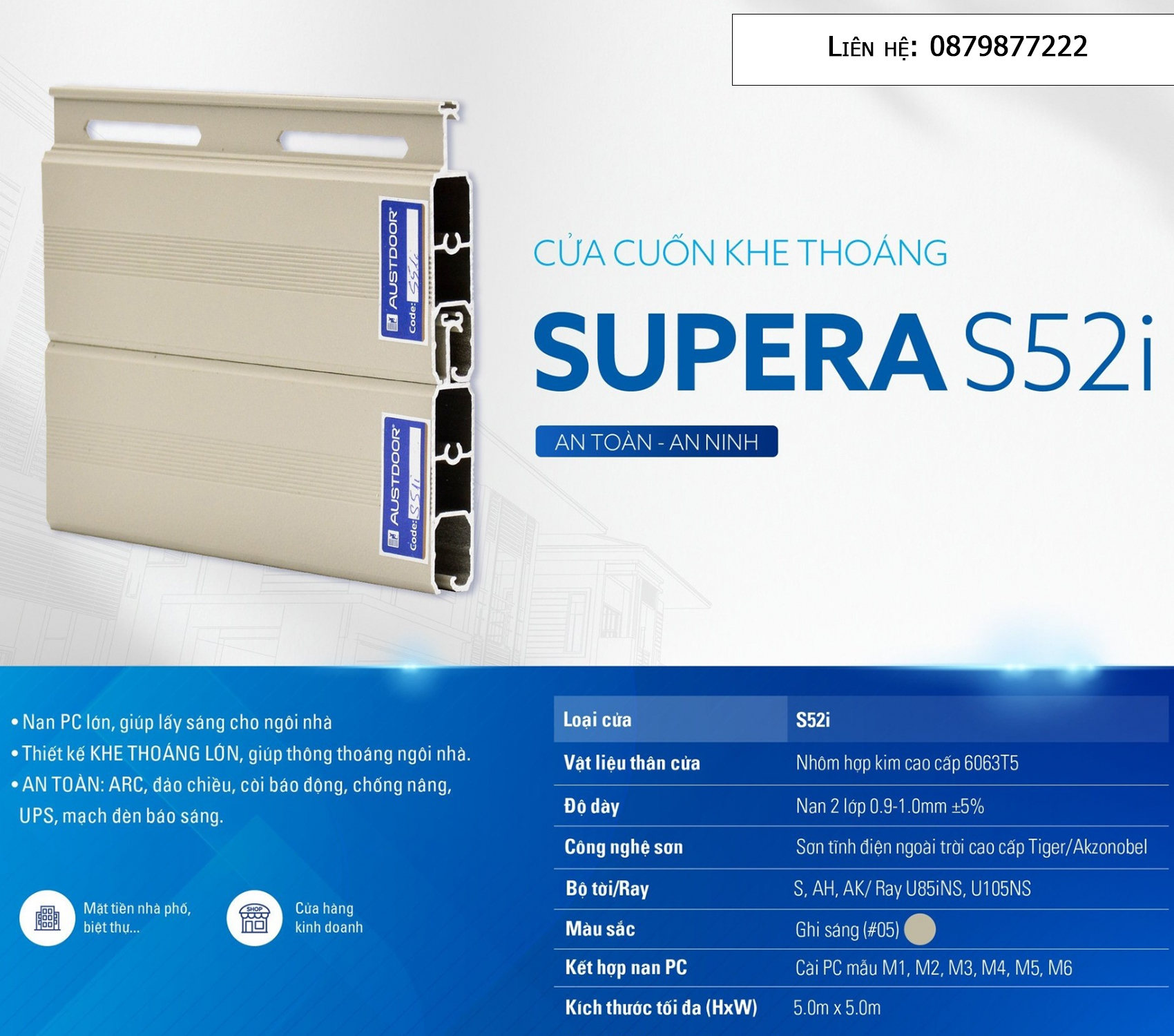 Cửa cuốn khe thoáng S52i là một giải pháp hoàn hảo cho những ai tìm kiếm sự kết hợp giữa tính thẩm mỹ, thông thoáng và an toàn. Với thiết kế hiện đại và các tính năng tiện ích, loại cửa này mang lại nhiều lợi ích cho người sử dụng, nâng cao chất lượng cuộc sống và hiệu quả công việc.