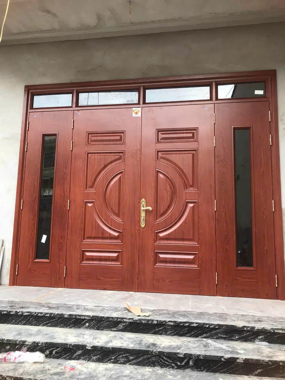 Cửa thép vân gỗ 4 cánh huỳnh bán nguyệt