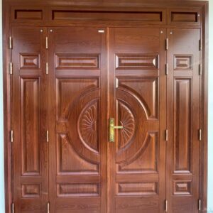 Cửa thép vân gỗ 4 cánh huỳnh hoa cúc