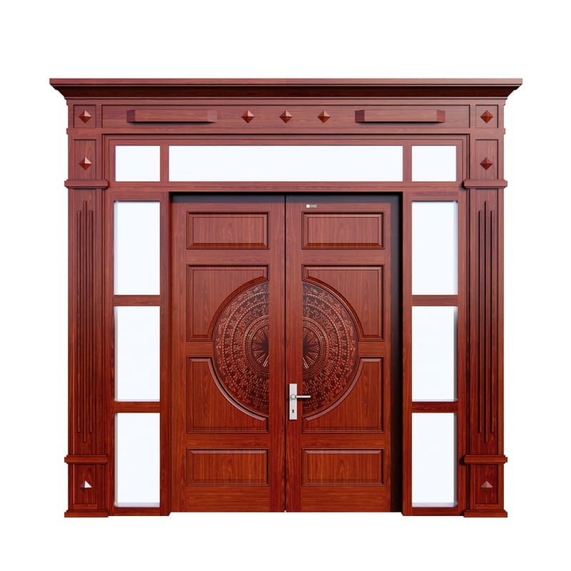 Cửa thép vân gỗ 4 cánh NS4H15HVK có họa tiết phào chỉ độc đáo, tương ứng với khung cửa, liên kết hoàn hảo với tường và trần nhà, tăng tính thẩm mỹ cho không gian sử dụng.