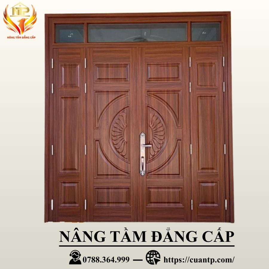 - Chất liệu bền bỉ chống cháy trộm: Cửa được làm từ thép mạ điện giúp tăng khả năng chống cháy và chống trộm vượt trội, lớp sơn vân gỗ mang đến vẻ đẹp tự nhiên không lo mối mọt, cong vênh.