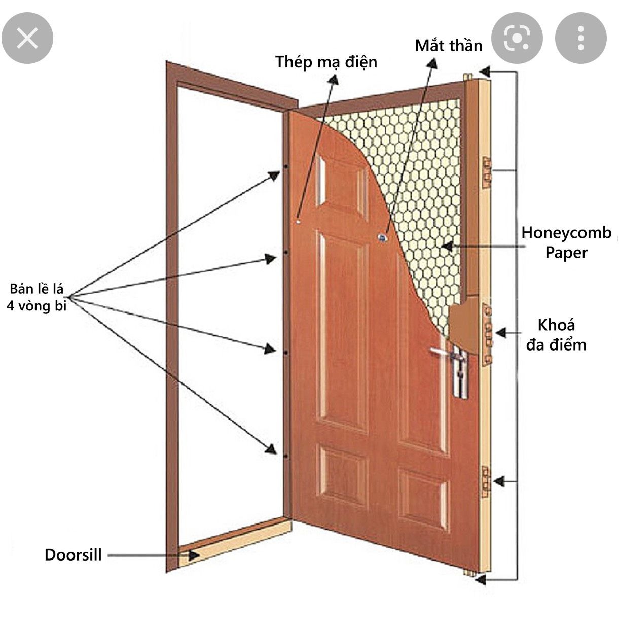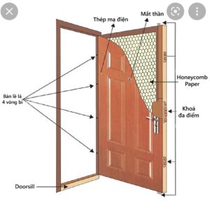 + Lớp cách nhiệt: Bên trong cửa có lớp vật liệu cách nhiệt, giúp tăng khả năng chống cháy và bảo vệ nhiệt.