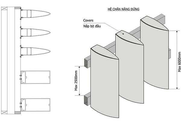 Lam chắn nắng hình viên đạn (aerofoil louver) được thiết kế với tương đối đơn giản bao gồm:
